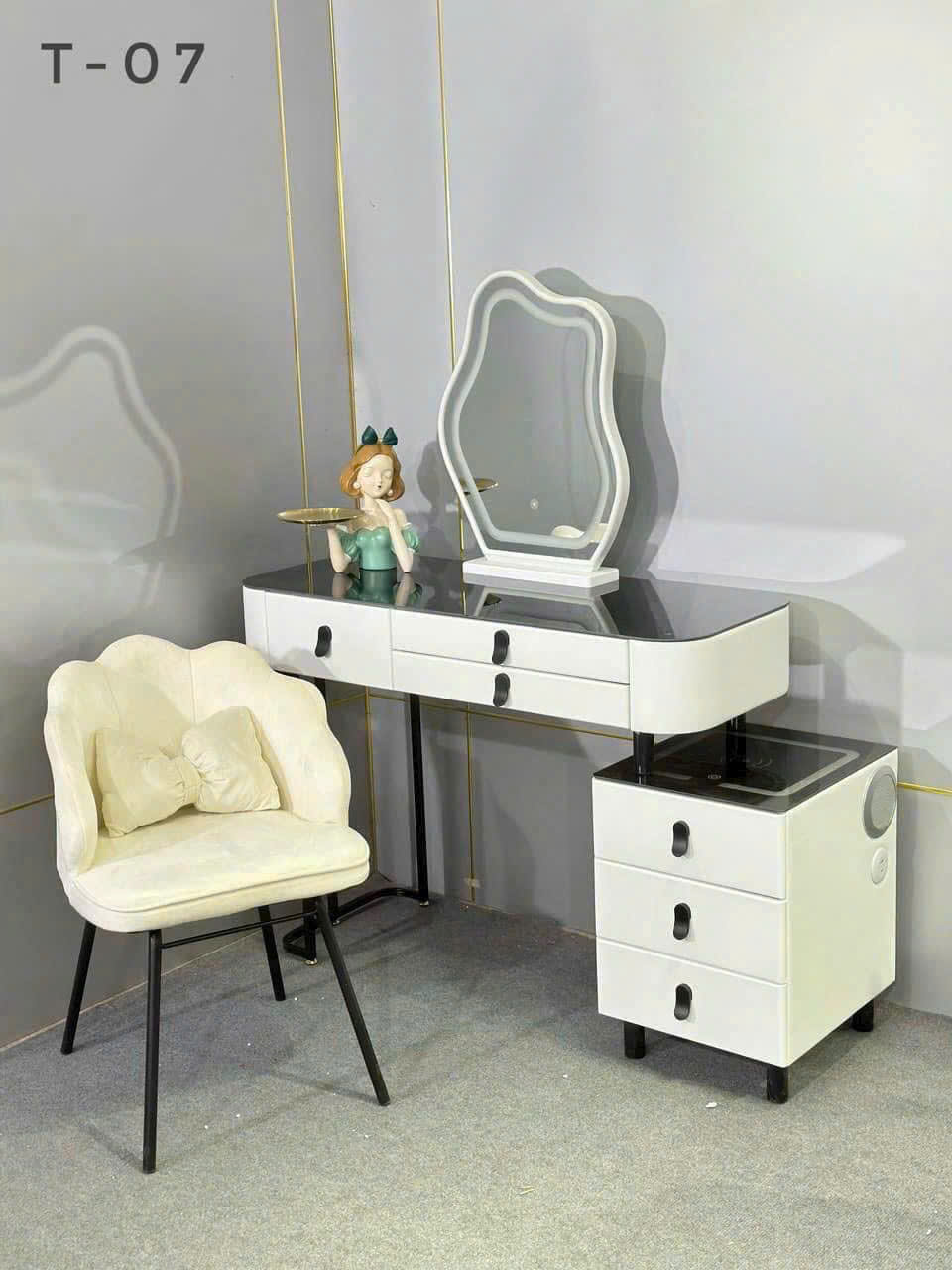 - Thiết kế ẩn: Nhiều mẫu bàn có mặt bàn có thể trượt hoặc lật lên, để lộ ra khoang chứa lớn bên dưới, giúp che giấu mỹ phẩm khi không sử dụng, biến bàn trang điểm thành bàn làm việc hoặc bàn đầu giường gọn gàng.