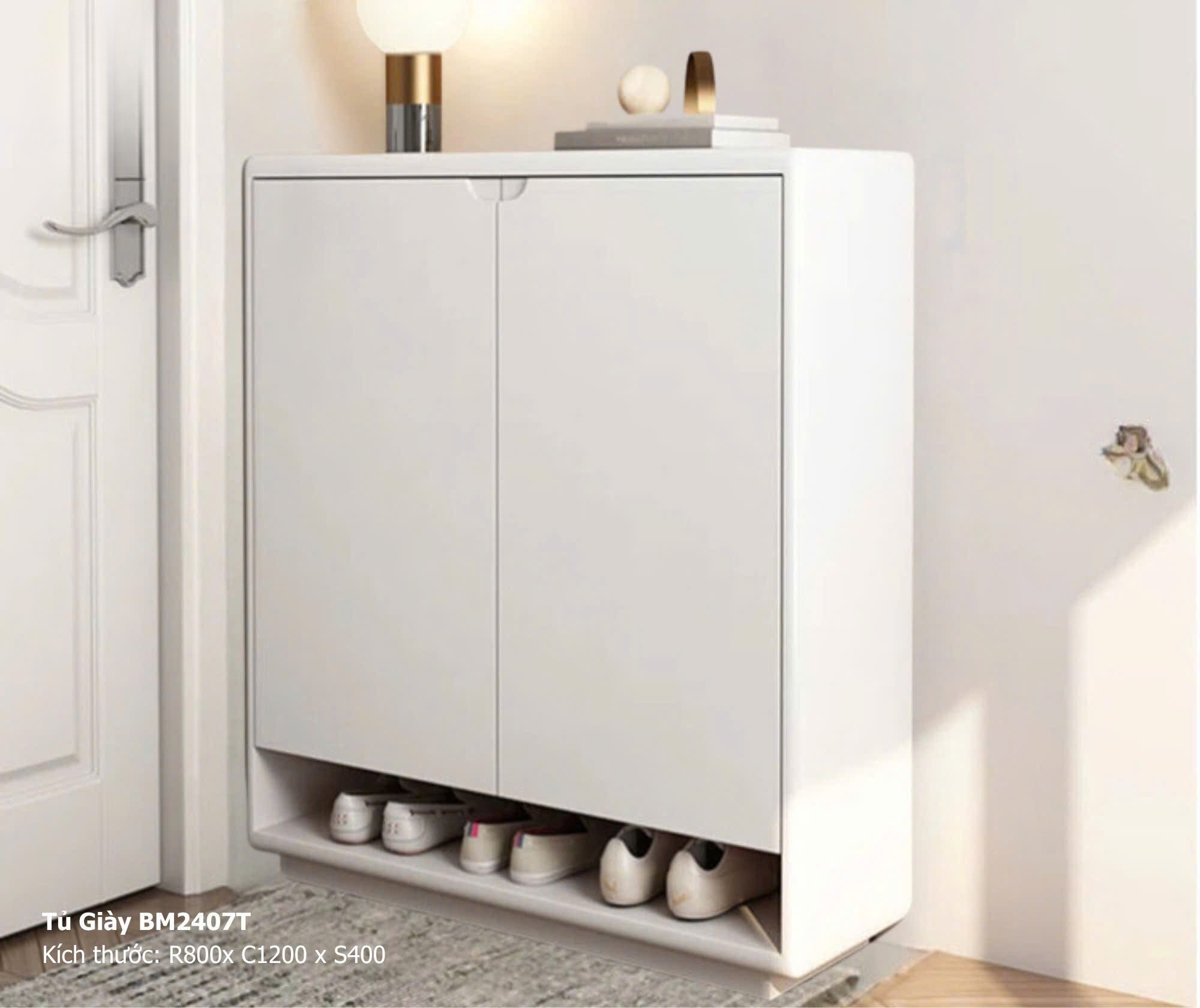 • Tính thẩm mỹ cao: Tủ giày có thể được tích hợp thêm mặt trên rộng rãi để đặt các vật dụng trang trí như lọ hoa, đèn bàn hoặc tranh ảnh, biến khu vực này thành một điểm nhấn nghệ thuật.